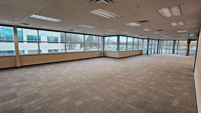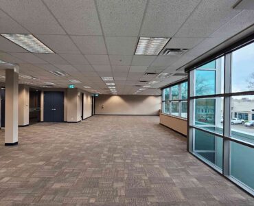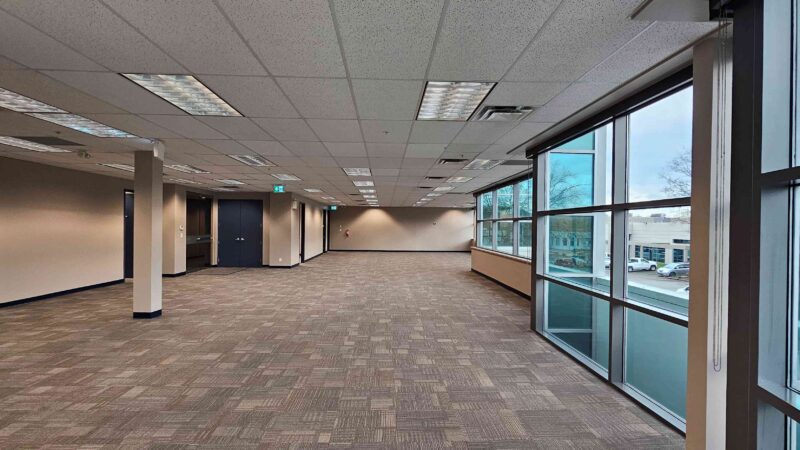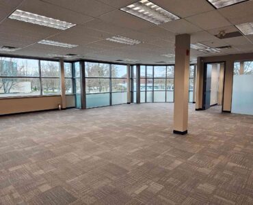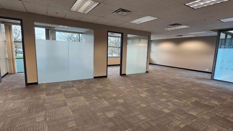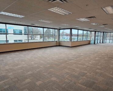 This building has an impressive high ceiling glass atrium main lobby entrance, beautiful elevator lobbies and common area finishes.